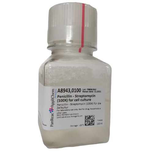 Penicillin-Streptomycin (100X) forcellculture,俗稱青鏈霉素雙抗,常用于預(yù)防細(xì)胞培養(yǎng)的細(xì)菌污染,特別是革蘭氏陽性和陰性菌的污染,可以直接添加到細(xì)胞培養(yǎng)液內(nèi)。青霉素抑制肽聚糖合成,鏈霉素抑制蛋白質(zhì)的合成,有效防止細(xì)菌細(xì)胞壁形成。 |