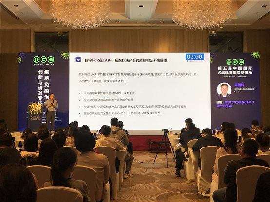 本次論壇西美杰特邀達普生物周國輝博士為與會人員帶來了“數(shù)字PCR方法在CAR-T質(zhì)控中的應(yīng)用”的專題講座。周國輝博士開發(fā)了一種基于數(shù)字PCR方法的儀器及微流控芯片系統(tǒng),從質(zhì)量控制的角度,實現(xiàn)對CAR-T細胞等生物制品的質(zhì)控要求。