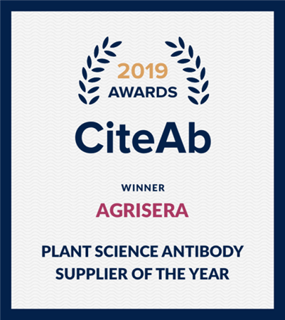西美杰代理的專業(yè)植物學(xué)抗體公司Agrisera成立于1980年,位于瑞典,有多年的研發(fā)和生產(chǎn)經(jīng)驗(yàn),致力于植物/環(huán)境科學(xué)研究中所需蛋白抗體的研發(fā),主要集中于模式植物及其他植物的生理、病理等相關(guān)蛋白抗體,涵蓋擬南芥、水稻、玉米、大豆、木本植物、藻類等30多個(gè)物種。Agrisera在2019年榮獲CiteAb頒發(fā)的全球科研試劑行業(yè)中植物抗體優(yōu)秀供應(yīng)商獎(jiǎng)項(xiàng)。