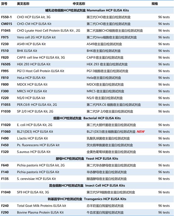 Cygnus has recently launched the BL21(DE3) HCP ELISA Detection Kit (Catalog No.: F1060), which is specifically designed for this purpose. It is suitable for detection scenarios such as purification process development and optimization, process control, routine quality control, and product release.