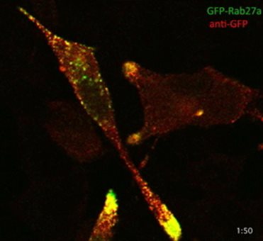 Immunostaining Results with GFP Antibody after Transfection of AtT-20 Cells for GFP-Rab27a Expression