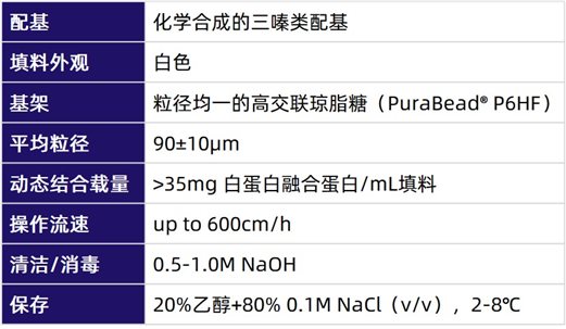AlbuPure® is an albumin affinity chromatography resin co-developed by Astrea Bioseparations and Albumedix. The resin matrix is highly cross-linked agarose with a uniform particle size, and the ligand is a synthetic triazine compound. It features high flow rate, high dynamic binding capacity, and strong chemical resistance, and is mainly used for the purification of albumin fusion proteins. The performance parameters of AlbuPure® are shown in the table below.