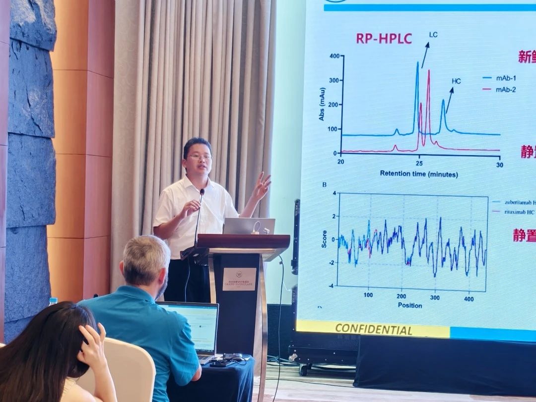 Dr. Fang Weijie, a researcher from Zhejiang University, gave a presentation themed "Application and Progress of Capillary Gel Electrophoresis in the Analysis of Protein-Based Biologics". Combining specific cases and experimental data, he delivered a detailed report on three aspects of CE-SDS: its application in the purity analysis of recombinant proteins under non-reducing conditions, its use in the heterogeneity analysis of monoclonal antibody heavy chains and light chains under reducing conditions, and its application and research progress in the analysis of small protein and peptide-based biologics. This presentation provides broader insights for the application of the CE-SDS method in biologics quality control.